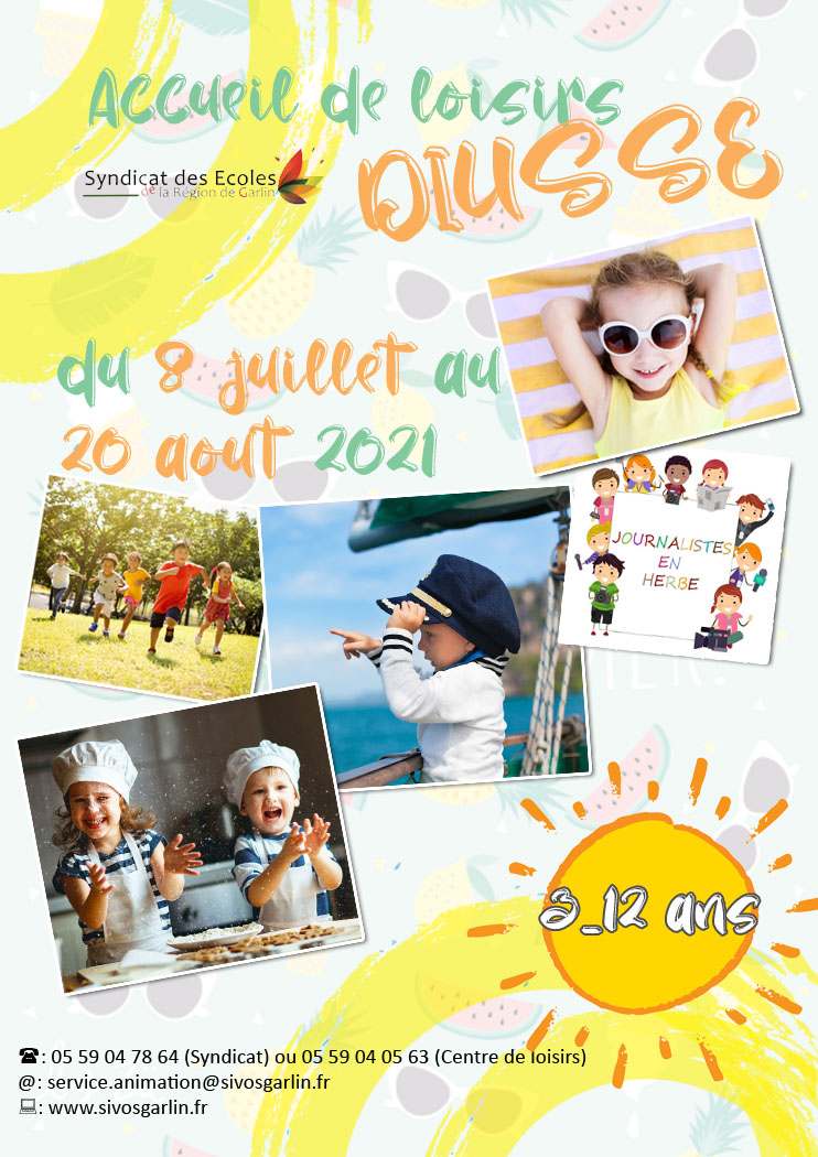 Cet été l'accueil de loisirs ouvrira ses portes du jeudi 8 juillet au vendredi 20 août. L'accueil des enfants se fera dans les locaux du groupe scolaire de DIUSSE de 7h30 à 18h30. Les inscriptions seront ouvertes entre le 21 juin et le 2 juillet (pour le mois de juillet) et jusqu'au 16 juillet pour ...