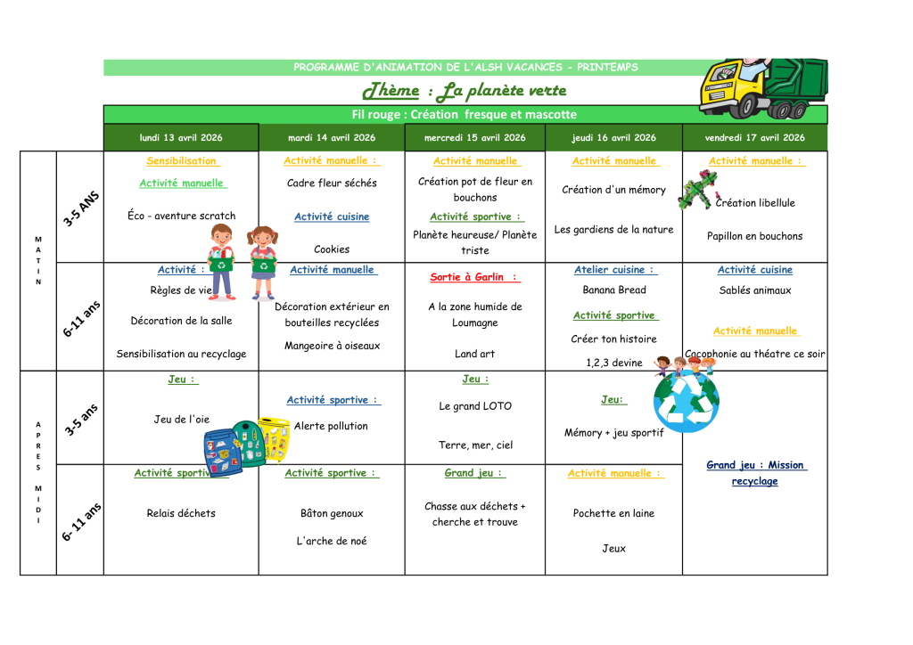 L’accueil de loisirs ouvrira ses portes du mardi 07 avril au vendredi 17 avril à l’école élémentaire de Garlin.